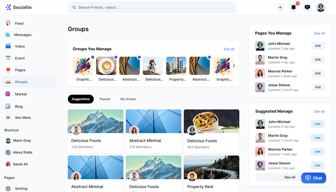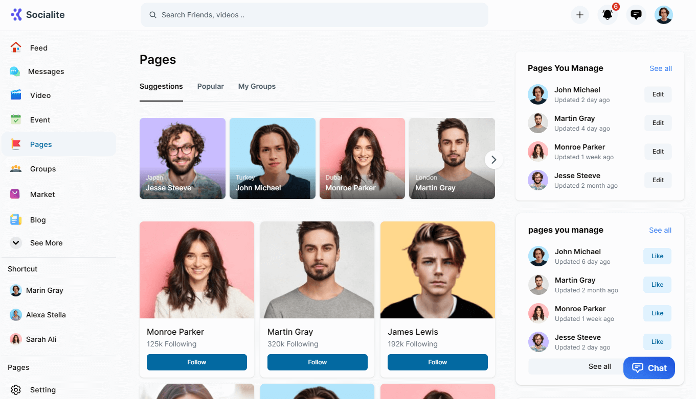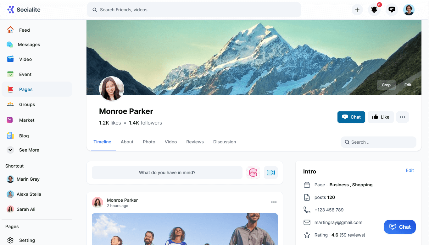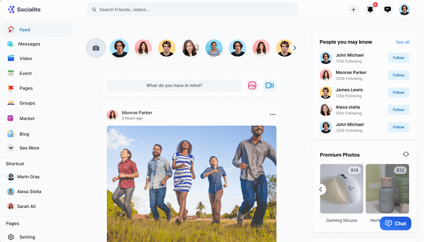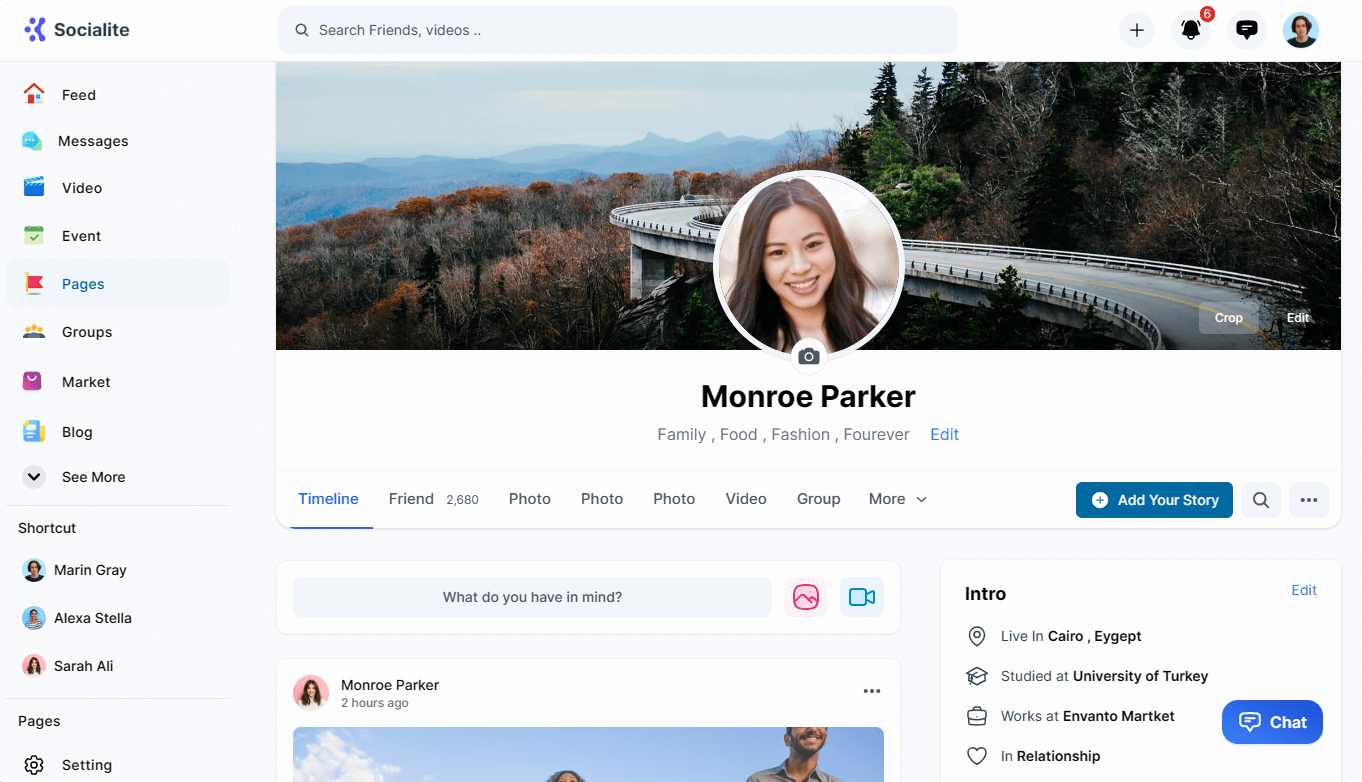 Professional and elegant template for creating a social network , designed with a clean, customizable and modern