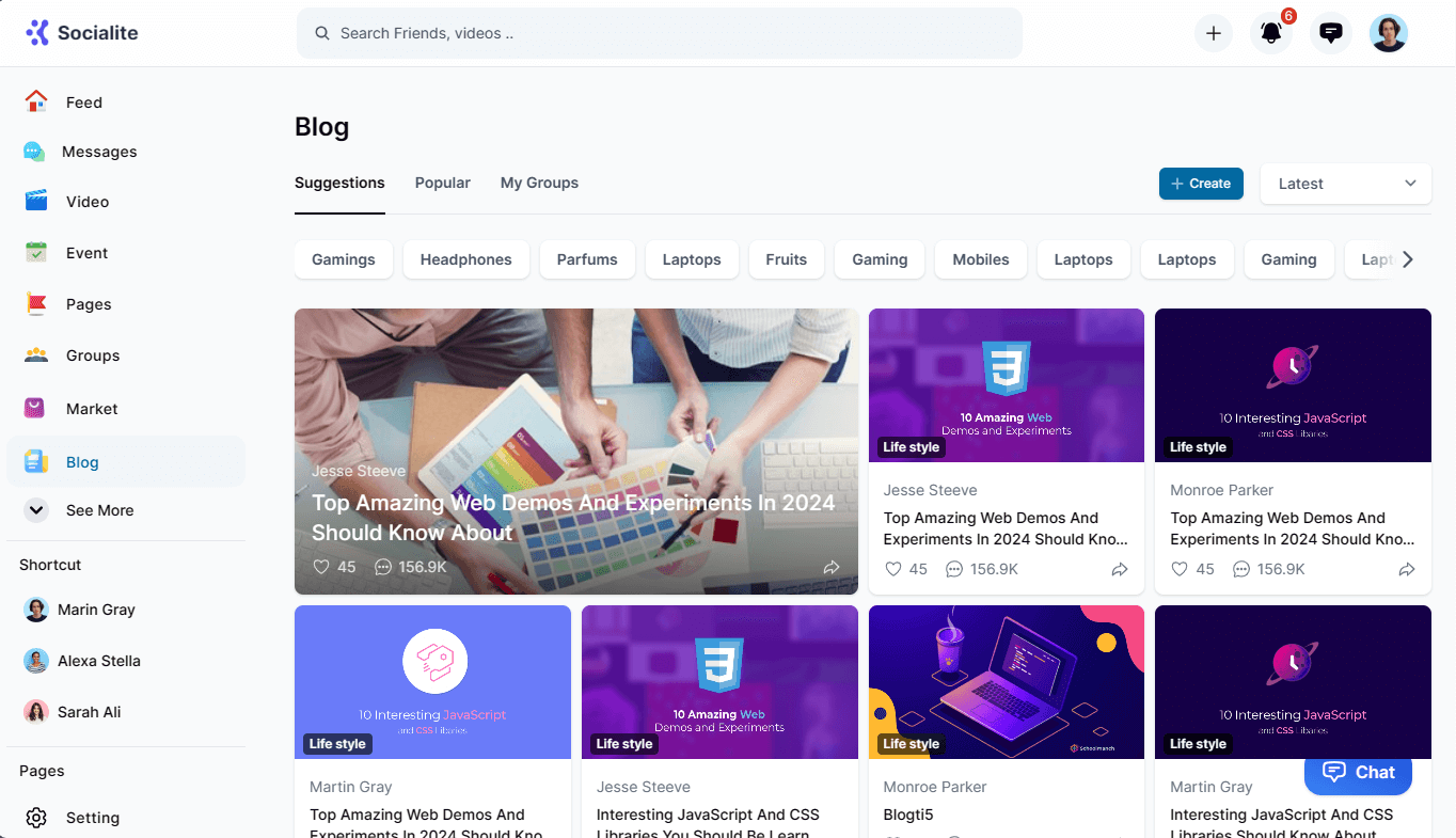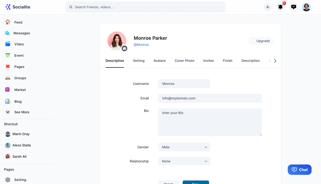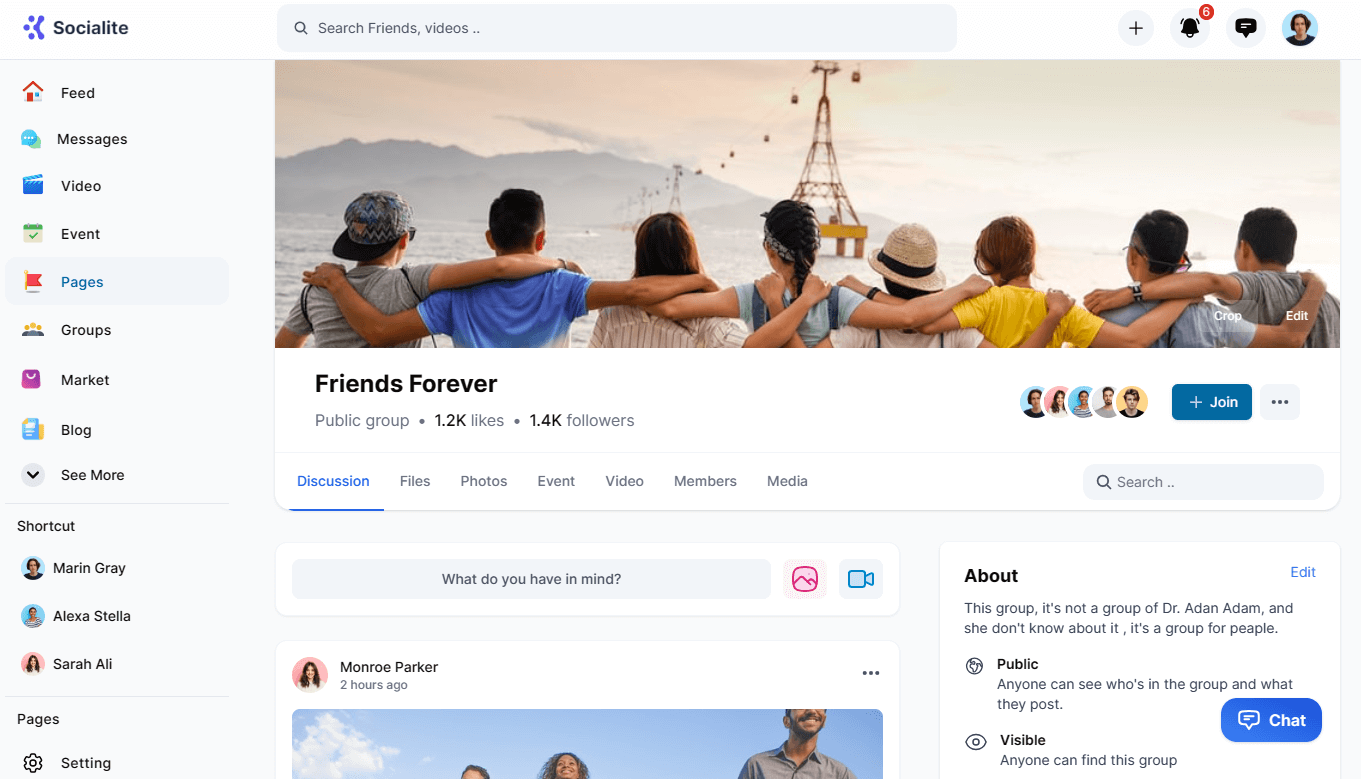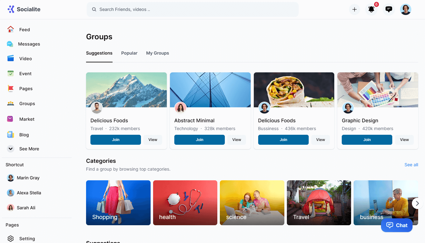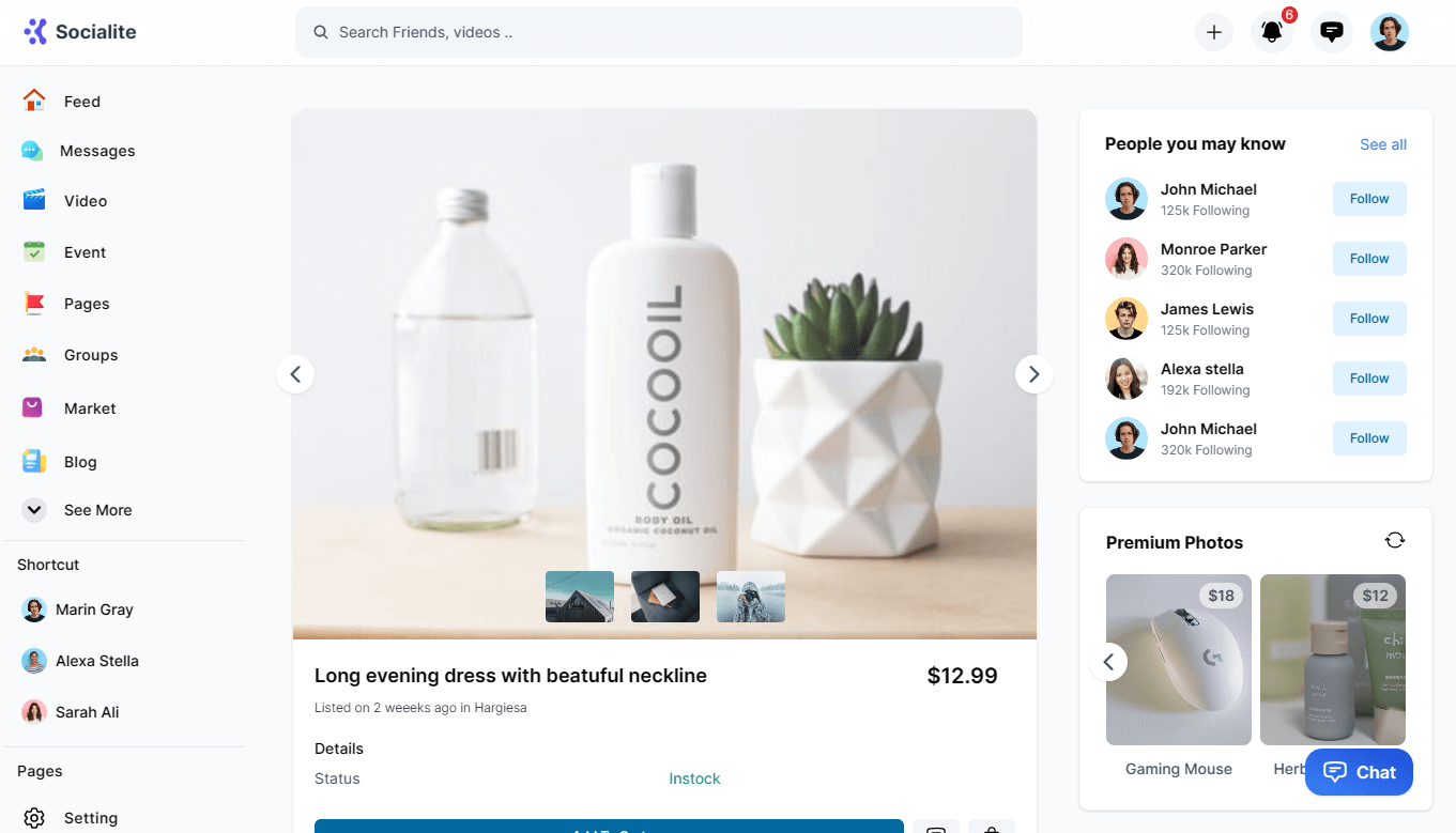 Professional and elegant template for creating a social network , designed with a clean, customizable and modern