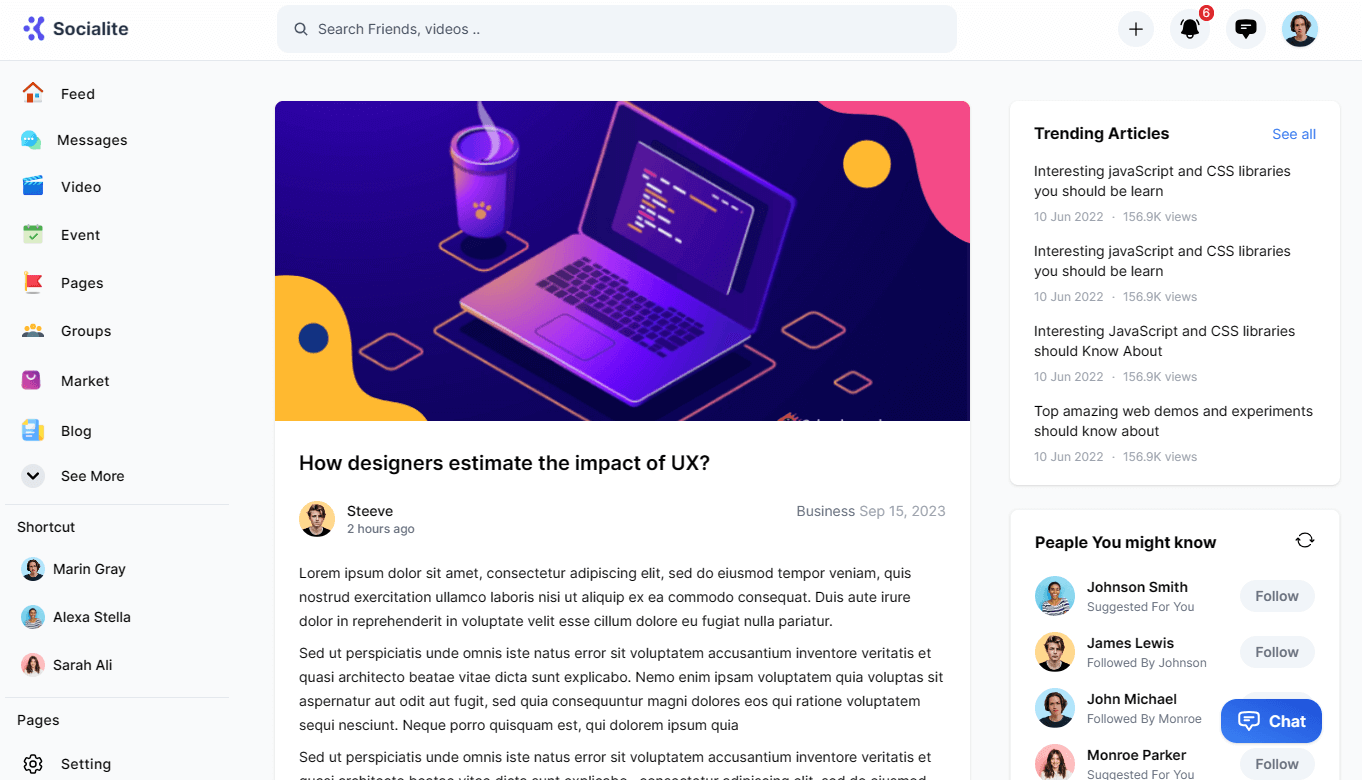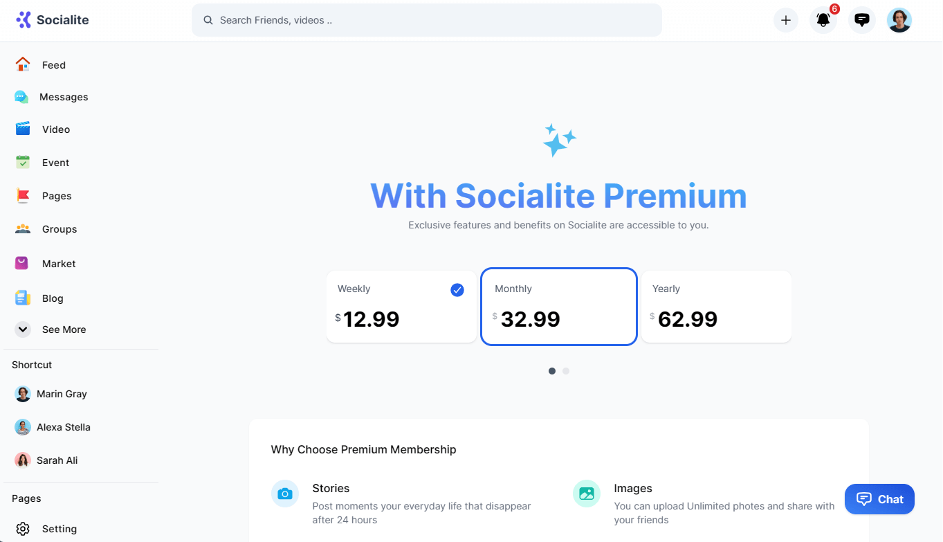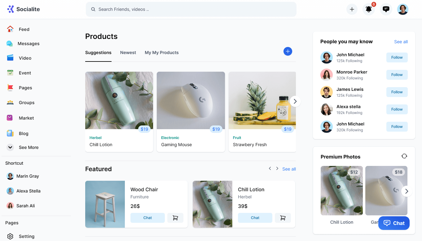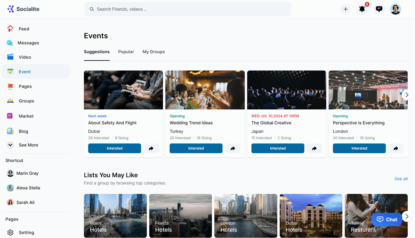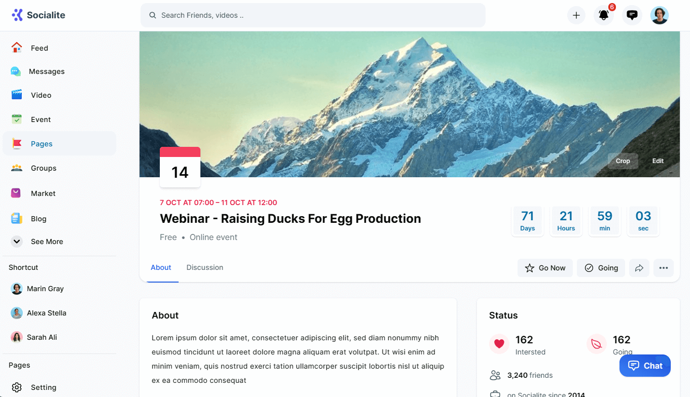 Professional and elegant template for creating a social network , designed with a clean, customizable and modern